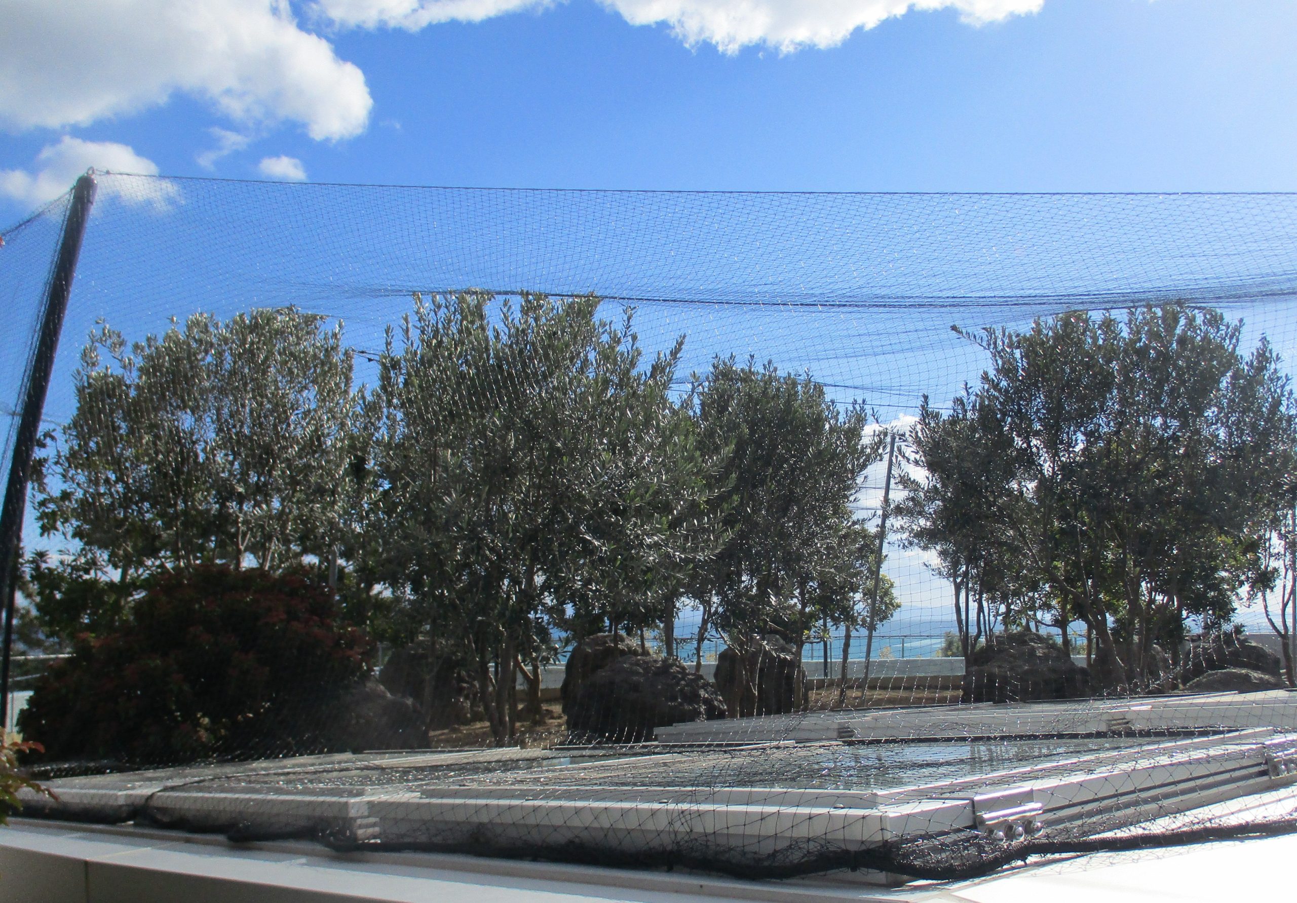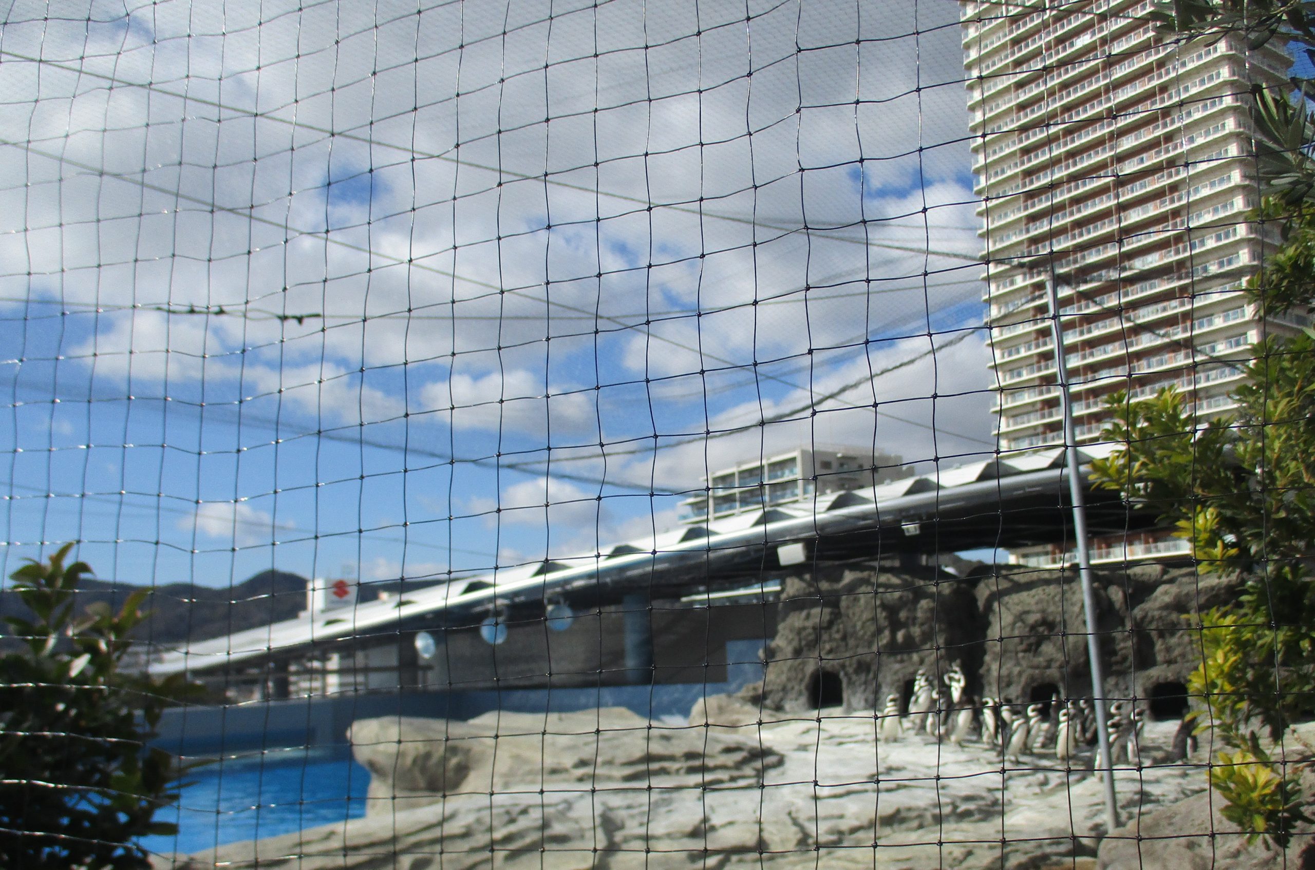 鳥インフルエンザの感染を防ぐ為、ペンギン舎全体(プールエリア、植栽エリア)への