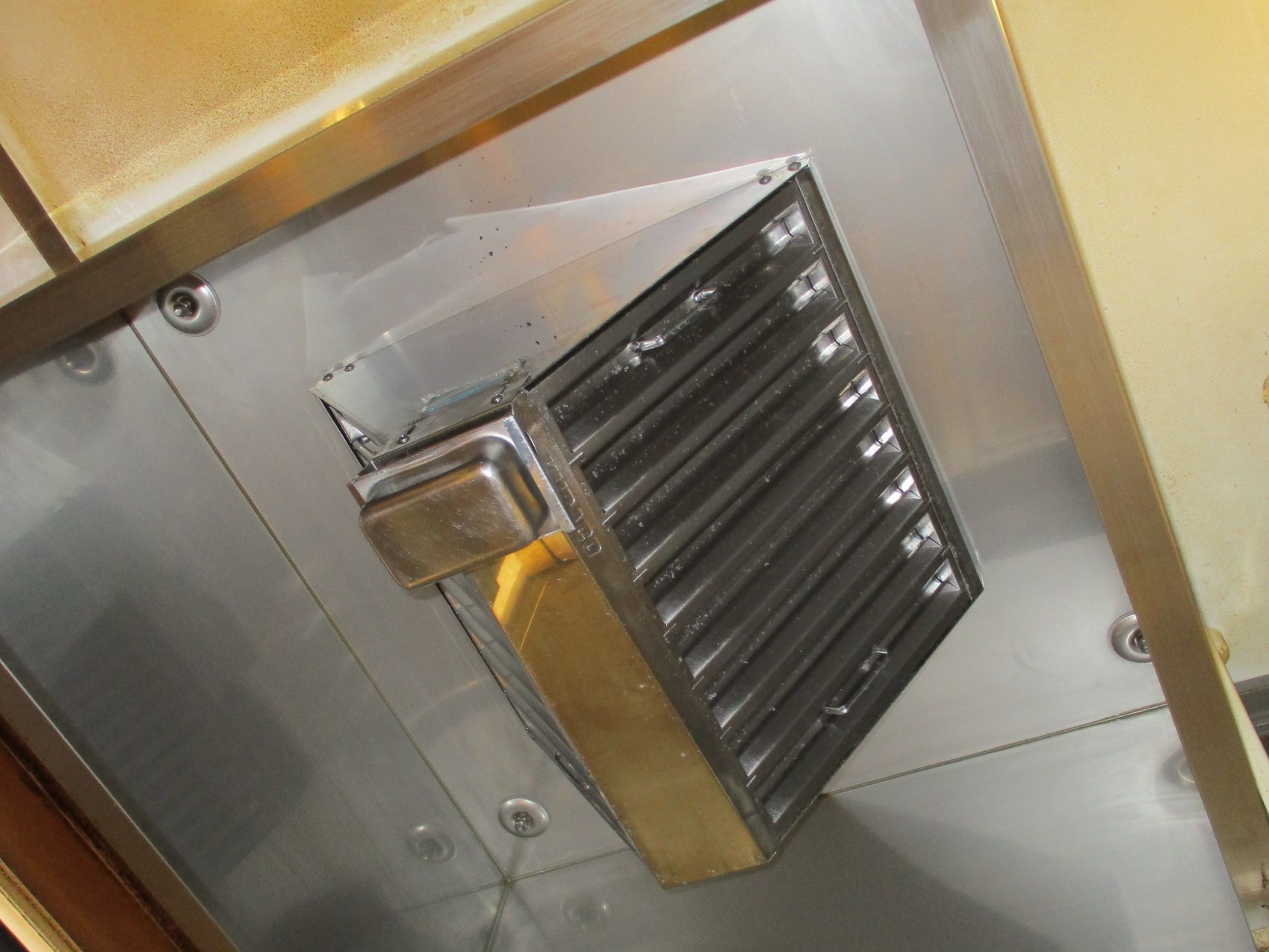 厨房内フード清掃、グリスフィルタ清掃、防火シャッター清掃